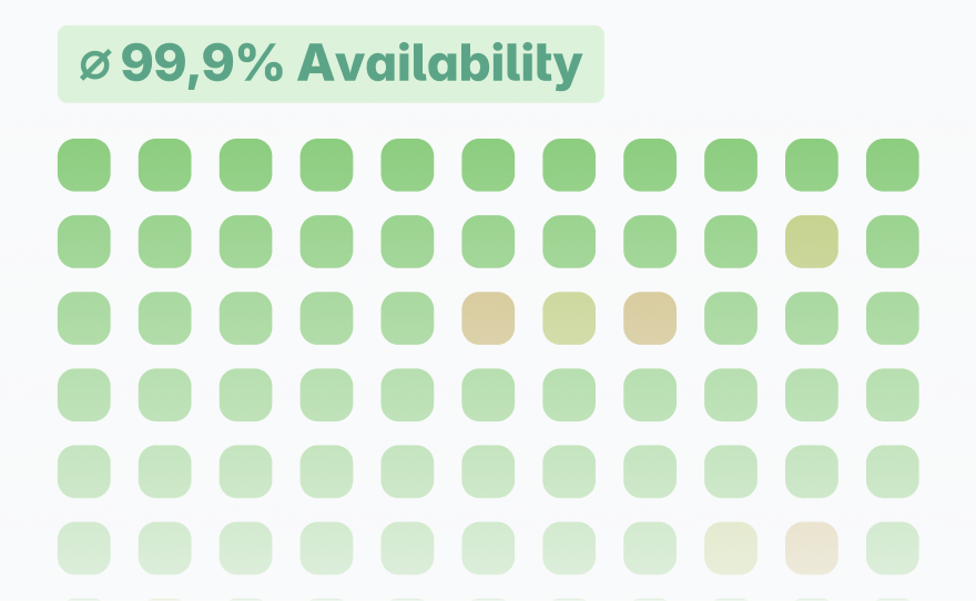 High availability of 99,999% thanks to distributed server infrastructure at several locations and tested compatibility.