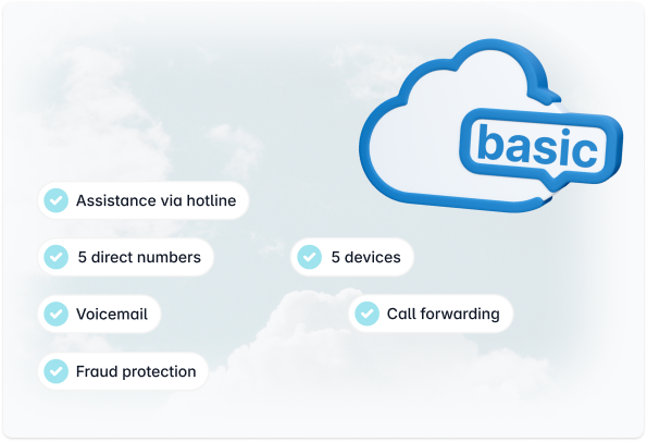No provision feeNo minimum contract termNumber blocks for all local networksSIP-DDI & CLIP no screening includedBasic Cloud PBX included