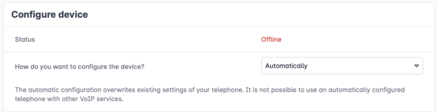 When configuring devices (also called provisioning) you can choose between manual or automatic setup. We recommend automatic setup if your IP phone is supported by us (currently Htek, Snom and Yealink). For a comprehensive description and additional advice on automatic configuration, please see our article "How to configure devices automatically in the Cloud Telefonanlage (ACS)?".