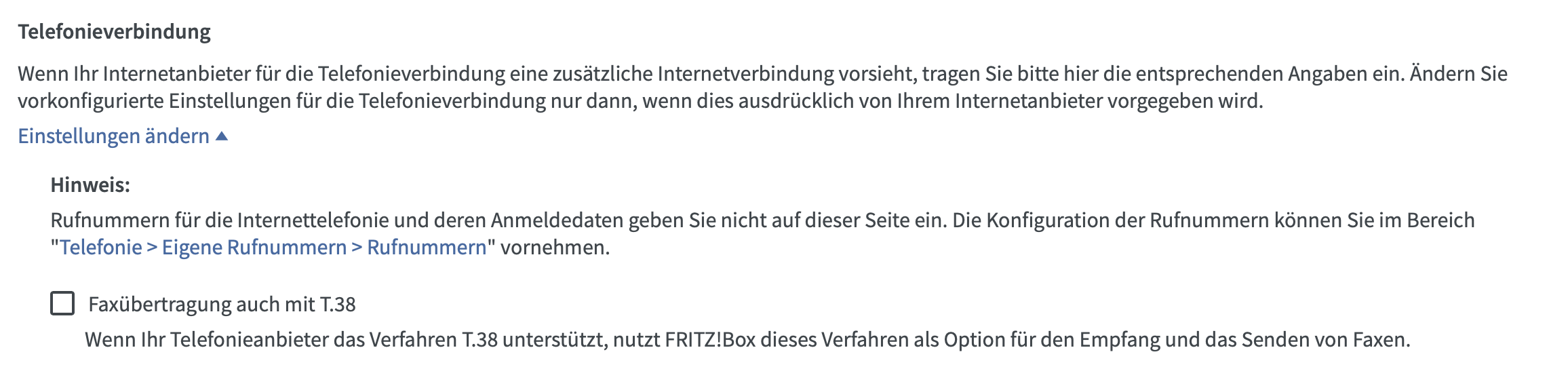 To ensure reliable fax transmission, we therefore recommend deactivating t.38 in your FRITZ!Box.