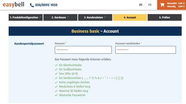 The easybell ordering process takes you to your individual tariff in five simple steps.