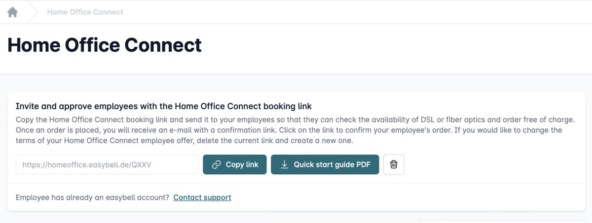 You will be informed by e-mail each time employees order a Home Office Connect connection via this link. You must agree to each order, as you as the employer bear the costs for the connection.