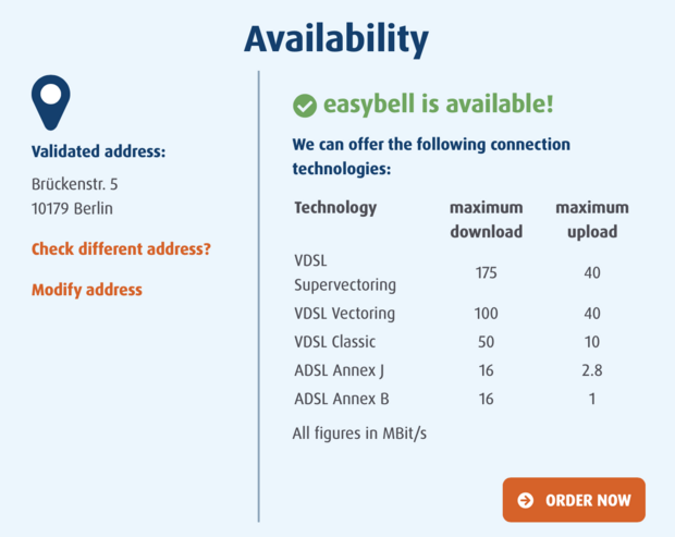 You will now be guided step-by-step through the ordering process. You can find out more about the individual steps here: "How to order an Internet connection".