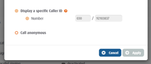 Attention!For regulatory reasons, it is only possible to signal German local and mobile phone numbers as well as free German special phone numbers with the Device-dependent caller-id. You can find more information about this in our article "Which phone numbers can I display starting from?“.