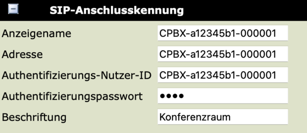 Note on the password: Please note that the SoundStation does not accept all special characters in the password that the cloud telephone system assigns. If your SIP password contains the characters <, >, `, ", [, ], {, }, (, ), please change the SIP password in the cloud telephone system by clicking on the symbol with the cogwheel.