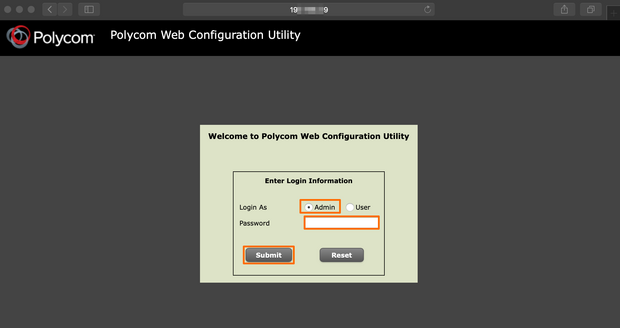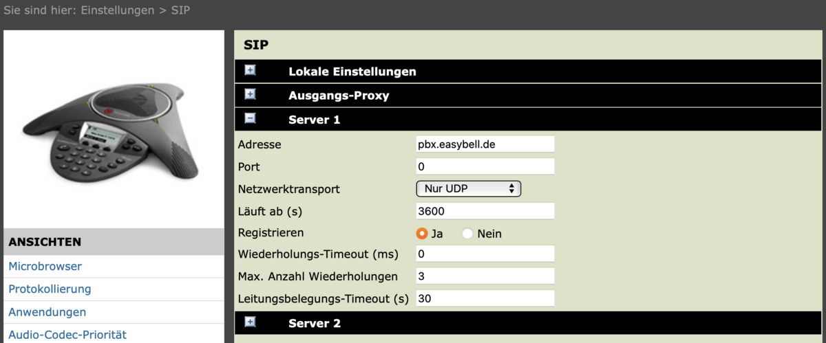 Back in the Polycom administration interface, please enter the following data in the corresponding submenus.