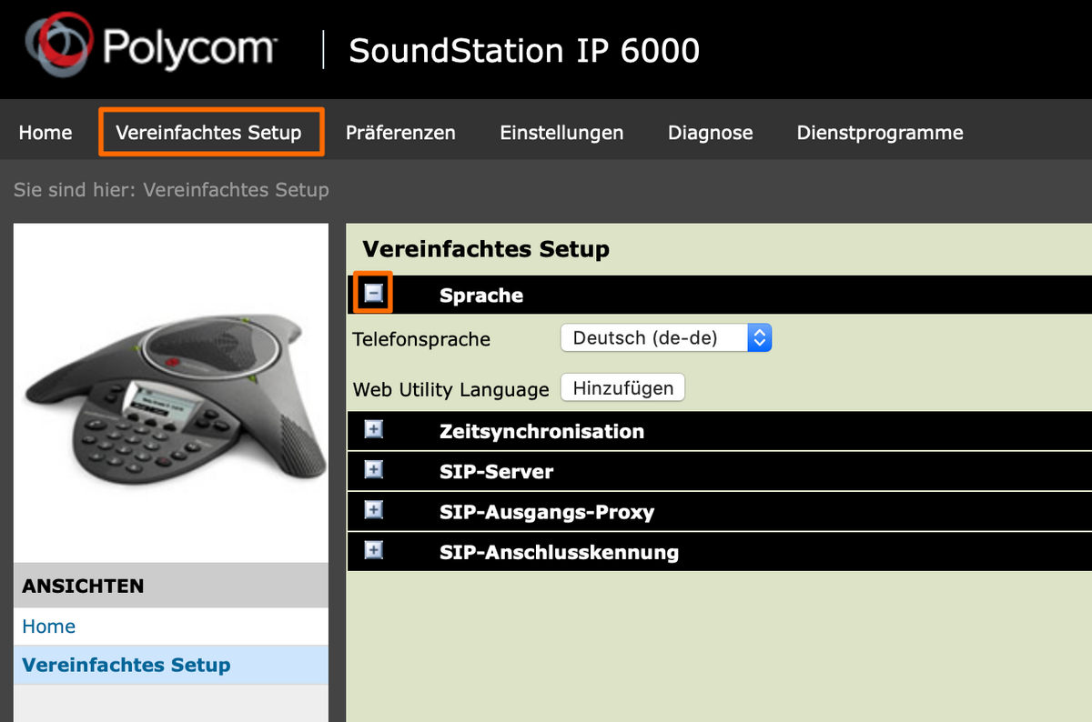 Regardless of whether on a single number or on the cloud telephone system, the basic settings of the telephone are of course identical. In addition, the access and basic configuration of the SoundStation is the same, regardless of the subsequent connection.