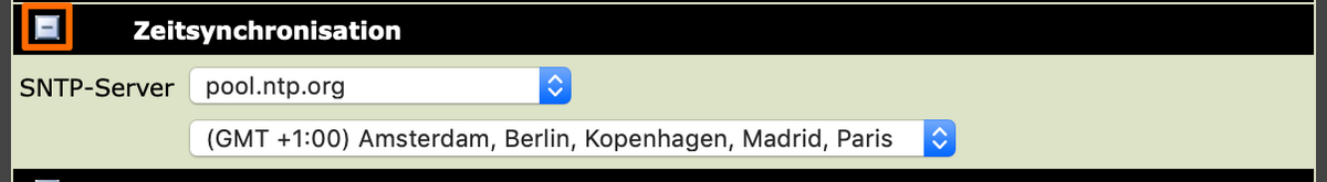 Time synchronization: The time server used is specified here. The time zone is also set here.