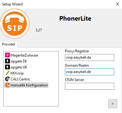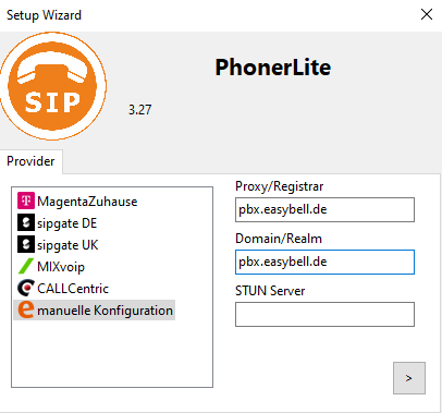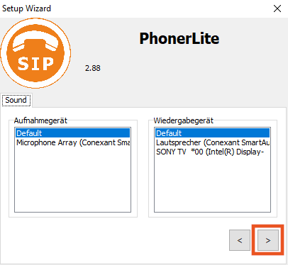 In the next step, you can select the recording and playback device that you would like to use for PhonerLite.