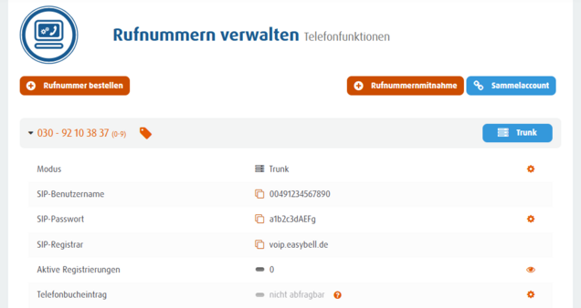 SIP access data: In the customer portal under "Manage phone numbers" in the detailed view of the respective phone numbers.