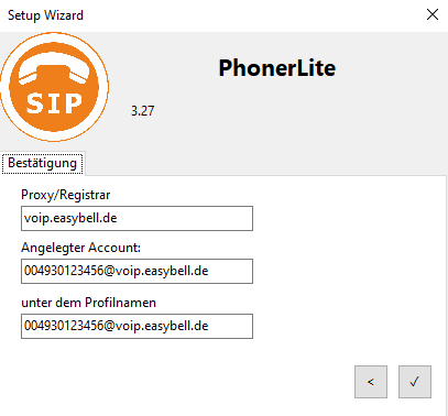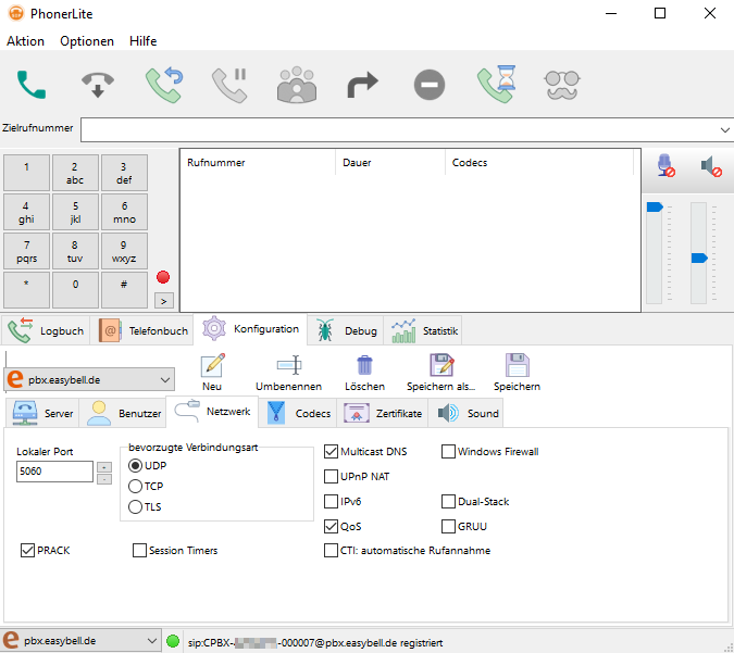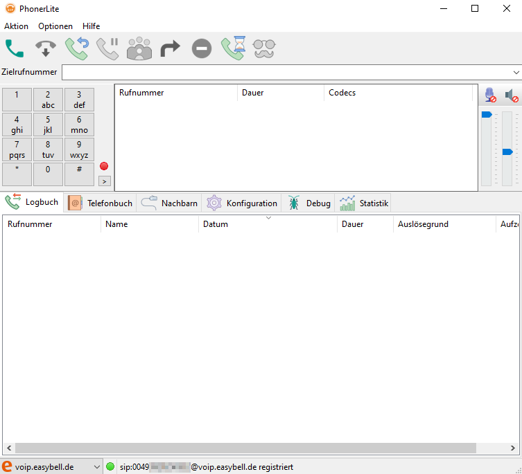 You should now have successfully registered. You can recognize this by the status at the bottom of the PhonerLite window.